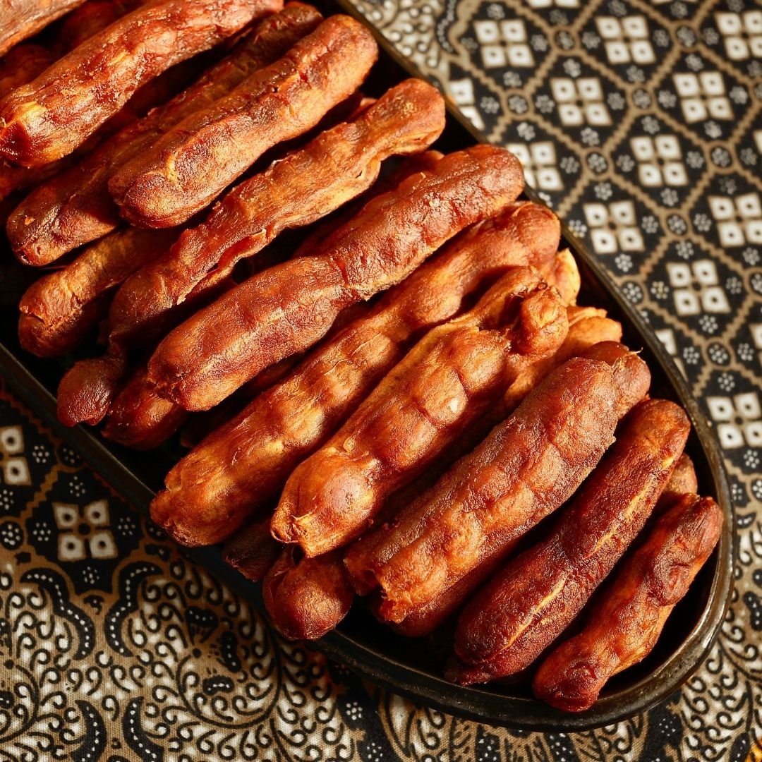 Tamarind (Tamarindus indica) is a tropical fruit enclosed in brown pods containing tangy-sweet pulp. This pulp is an essential ingredient in Indian, Asian, African, and American cuisines. Known for its unique sweet-sour taste, tamarind is used in chutneys, curries, soups, rice dishes, sauces, marinades, and even beverages.